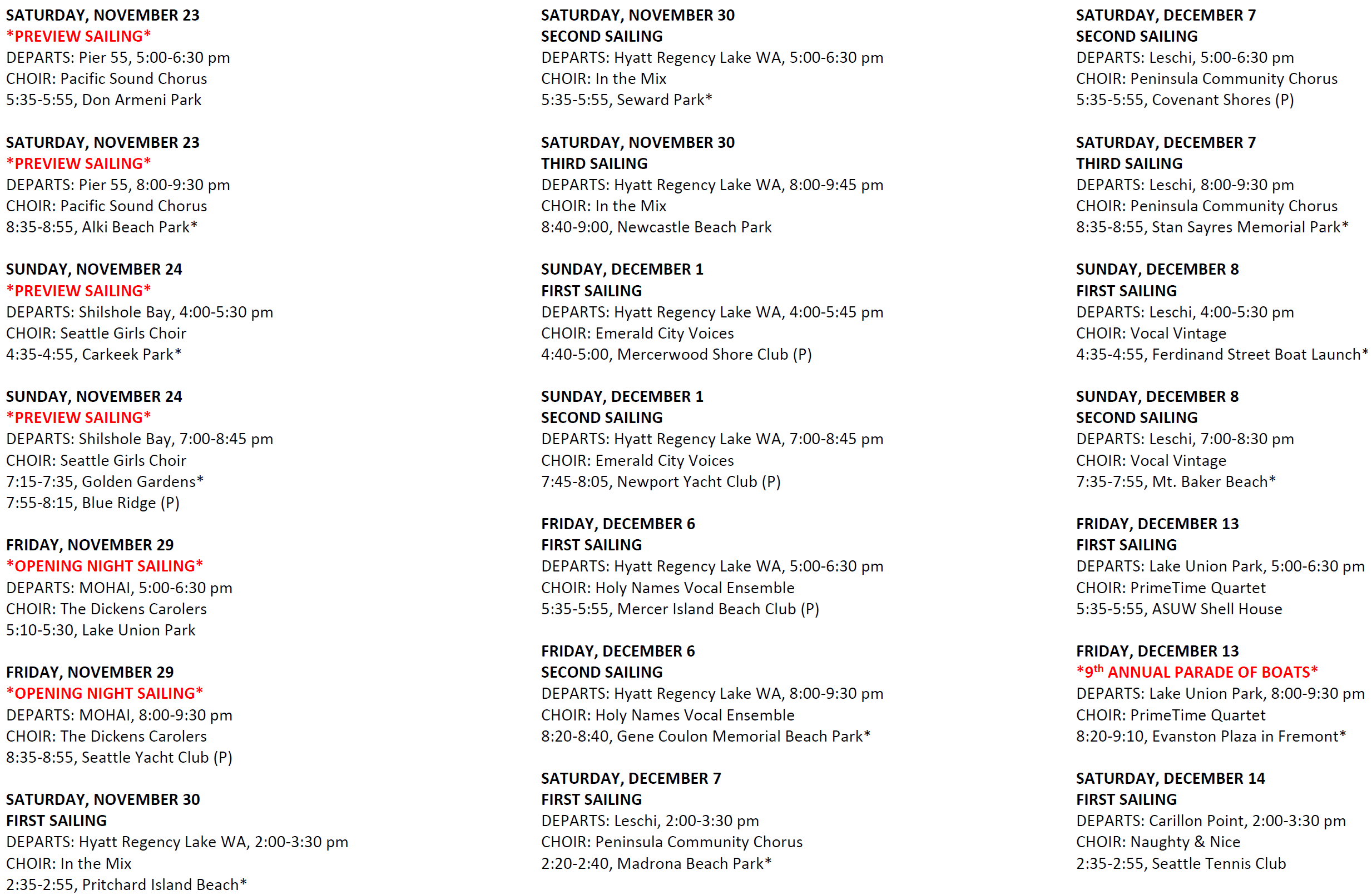 Schedule with choirs part 1