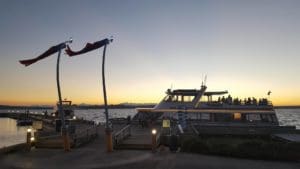 Celebrations docked at Carillon Point, sunset